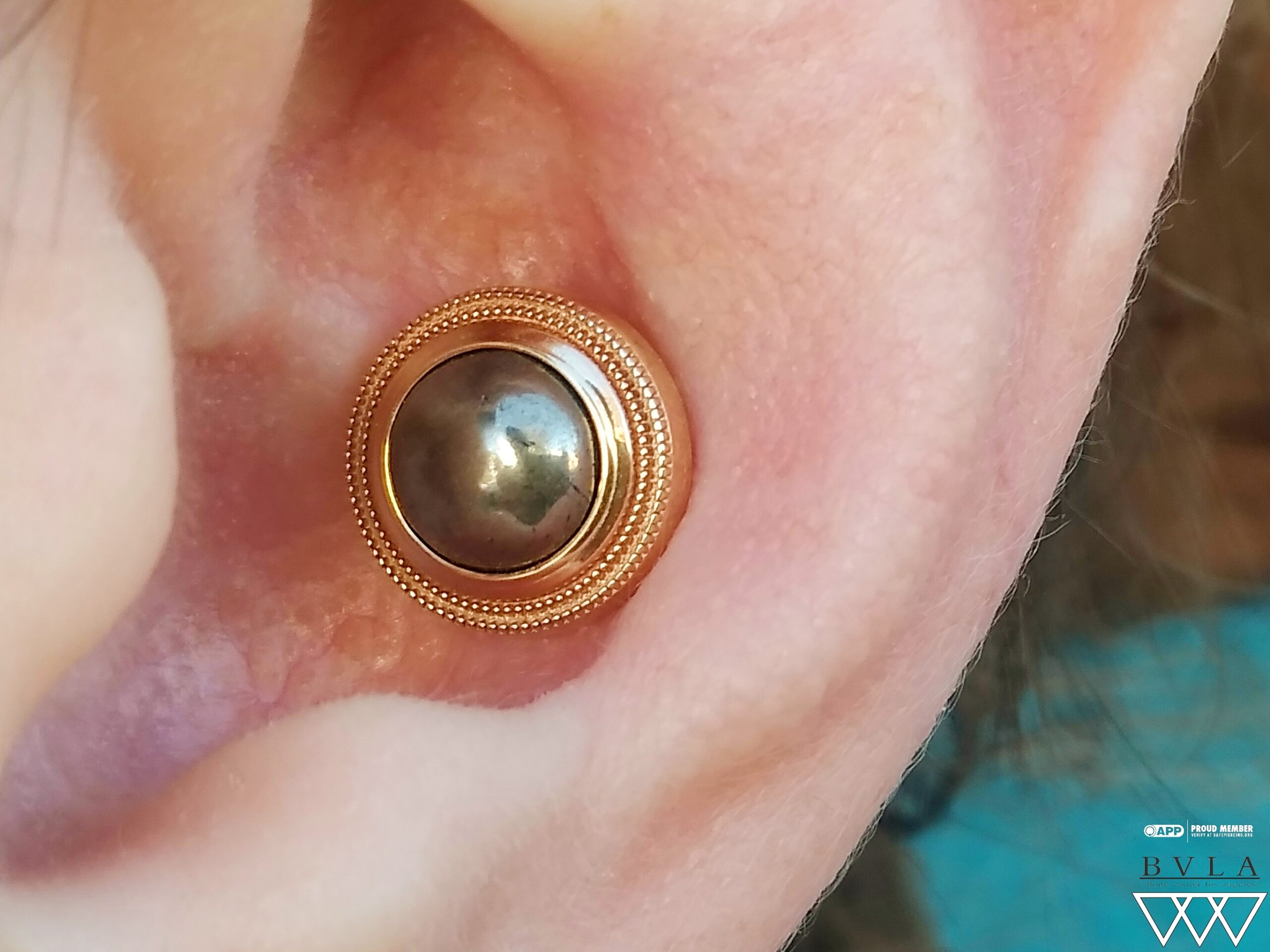 This stunning BVLA milgrain end featuring a bold 6mm pyrite cabochon had been waiting in the case for the right client—and they were thrilled to claim it! Pyrite is known for its metallic shine and grounding energy, making it a perfect choice for anyone seeking a standout statement piece. Whether you’re curating a full ear or adding a solo stunner, we’ve got powerful jewelry ready to go. Looking for luxury body jewelry? Come see what’s waiting for you!