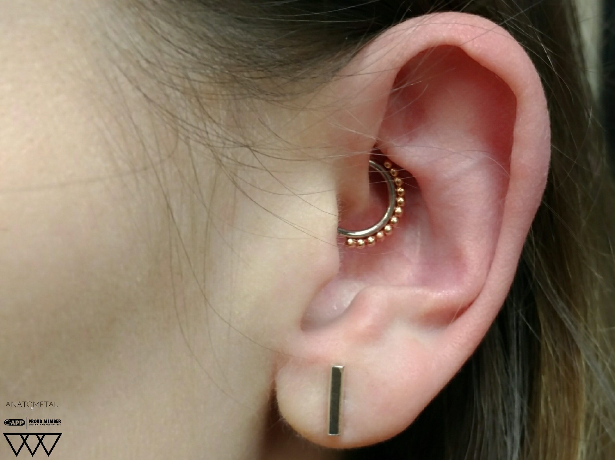 Here’s another beautiful daith piercing I performed! After healing, this client upgraded their piercing with a stunning 18k gold “Vaughn” ring from Anatometal. Daith piercings can take 6 months to a year to heal, but once healed, upgrading to high-quality jewelry like this creates a timeless and elegant look. Whether you’re considering a new daith piercing or an upgrade, trust me for your piercing needs. Thanks again for the trust and support!