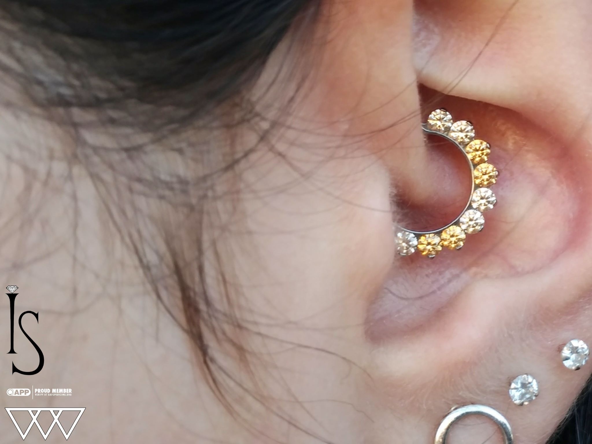 This healed daith piercing is complemented by a stunning clicker, and it still looks fantastic. Whether I pierced it initially with this piece or swapped it later, the jewelry really makes the piercing pop. Want your daith to look as amazing as this one? Letβs work together to create the perfect look for your piercing. Book an appointment with me today and explore a wide range of beautiful jewelry options for your daith piercing!