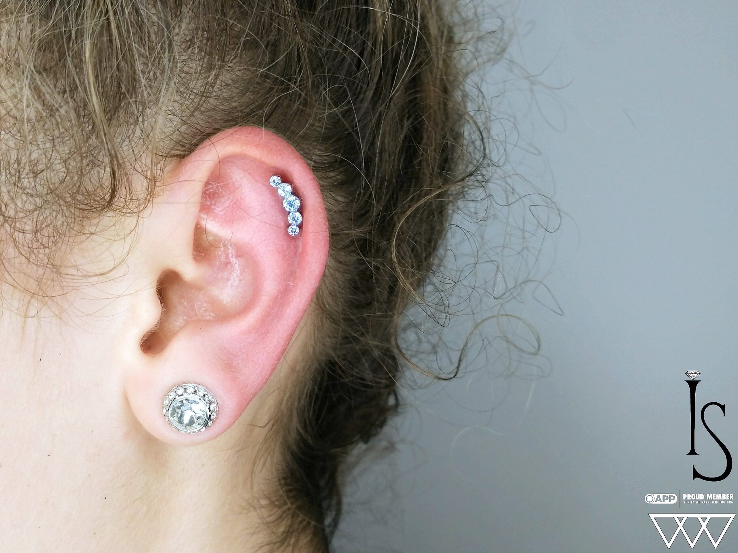Here’s a great shot of a helix piercing featuring a titanium threadless “Prium” end from Industrial Strength. This client had excellent taste in jewelry and sat perfectly during the process. Helix piercings typically take anywhere from 6 months to a year to fully heal, so patience is key. If you’re considering a helix piercing or any other cartilage piercing, Iโm here to help with quality jewelry and expert care. Thanks for looking, and I look forward to seeing your piercings evolve!
