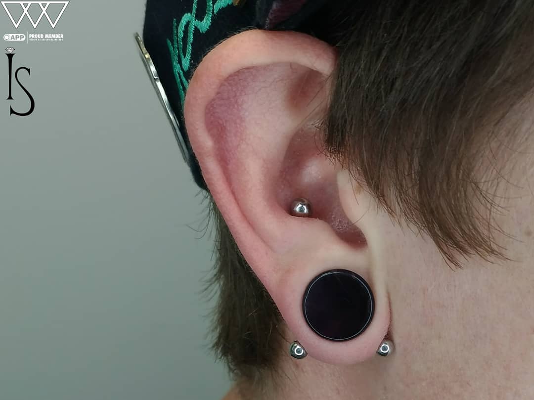 This piercing journey started over 15 years ago (2009) with a cool idea from a family member, and I had the pleasure of performing the conch and industrial piercings along with it. These piercings have healed beautifully over the years, and I’m so grateful for the trust and opportunity to create lasting work. Whether you’re getting your first or your fiftieth piercing, I’m here to ensure it’s a seamless experience. Thanks again for trusting me with your piercings!